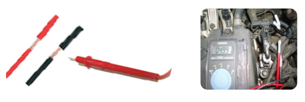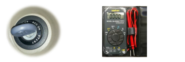 ③ 자동차 키를 ON상태에 두고, 디지털 테스터기 게이지를 DC레인지에 맞춥니다.